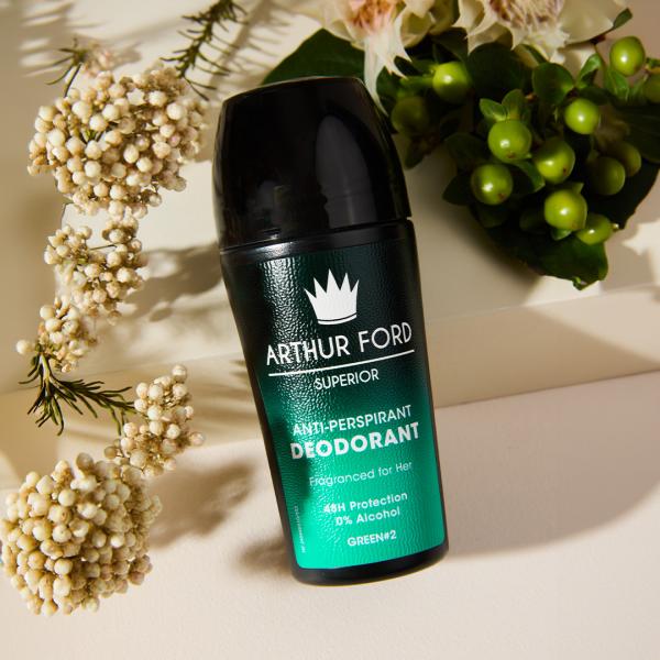 Enhance your all-over ultimate fragrance experience by applying a fragranced ARTHUR FORD Roll-on Deodorant which provides a long lasting freshness while leaving behind the y scent of ARTHUR FORD CHL-F / GREEN#2 Eau De Parfum.